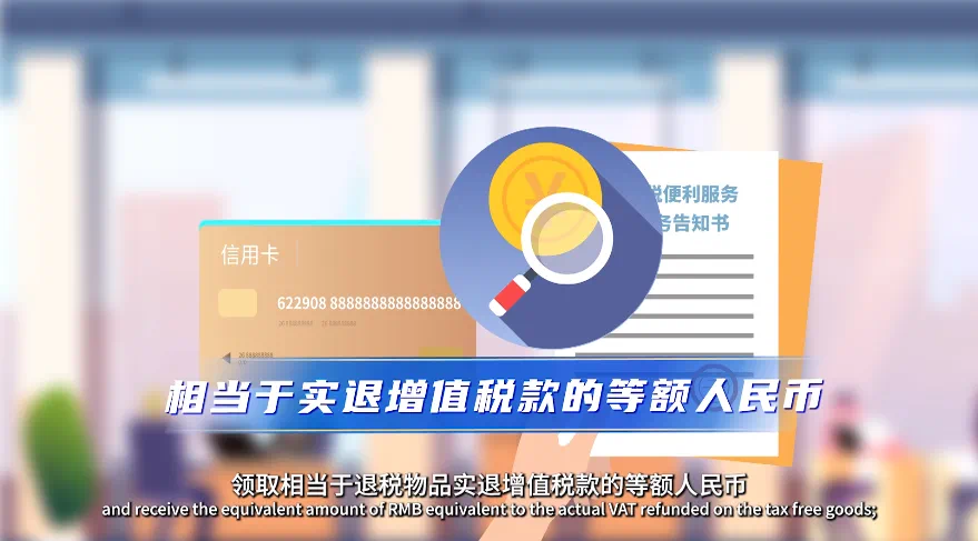 2. The purchaser must use his/her credit cards to apply for pre-authorization guarantee and fill in the Notification on the Rights and Liabilities for Exit Tax Refund to obtain cash in RMB with the same amount of the VAT refund for the purchased goods;