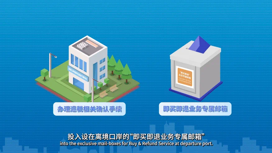 再到离境口岸隔离区退税代理机构办理退税相关确认手续,也可直接将相关材料投入设在离境口岸的“即买即退”业务专属邮箱。
