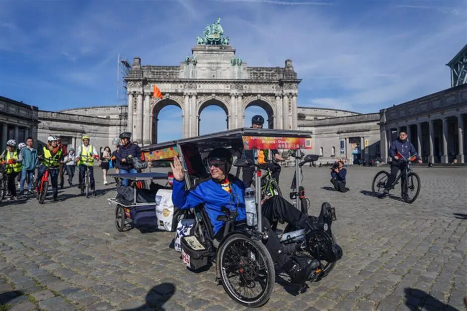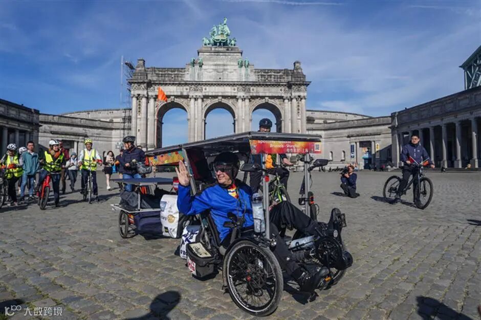 Belgian cyclist Claude Brouir, now in his sixties, officially set off on his cross-continental journey titled "Bike2Shanghai" on Saturday morning from Cinquantenaire Park in Brussels. More