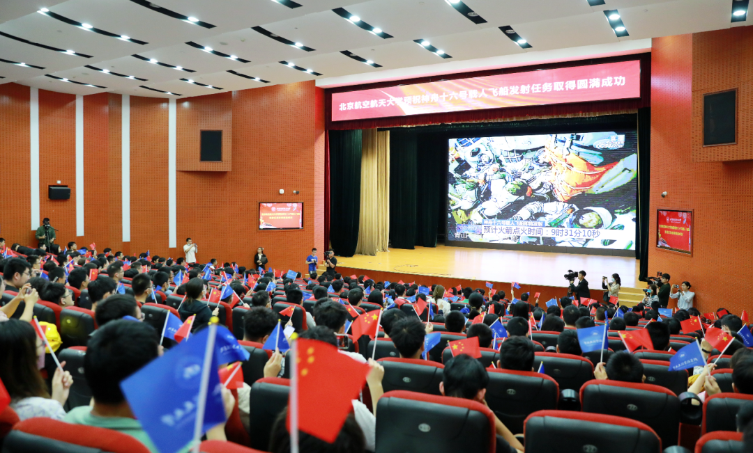 今天上午,在北航校园,同学们一起在屏幕前共同关注火箭发射,并为桂老师加油“祝我导圆满完成任务!”“出征顺利!圆满凯旋!”