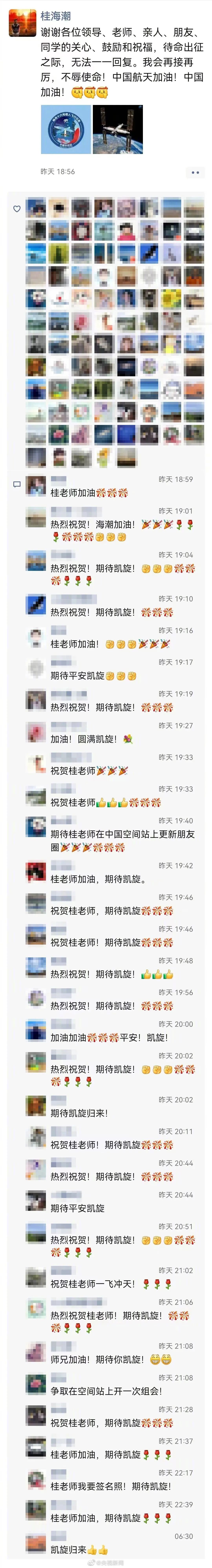 “桂海潮朋友圈”“我的老师去太空了是什么体验”等相关话题冲上热搜,大家一起给桂老师的朋友圈点赞,加油!