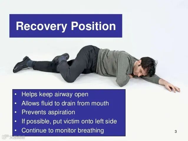倒地不起的病人/伤员/深度醉酒者也应该采取这种姿势帮助保持呼吸道畅通,还有使可能的呕吐物和口鼻部液体自然流出(我自己就经历过一次术后麻醉状态下仰躺,险些被自己的鼻涕淹死) 。