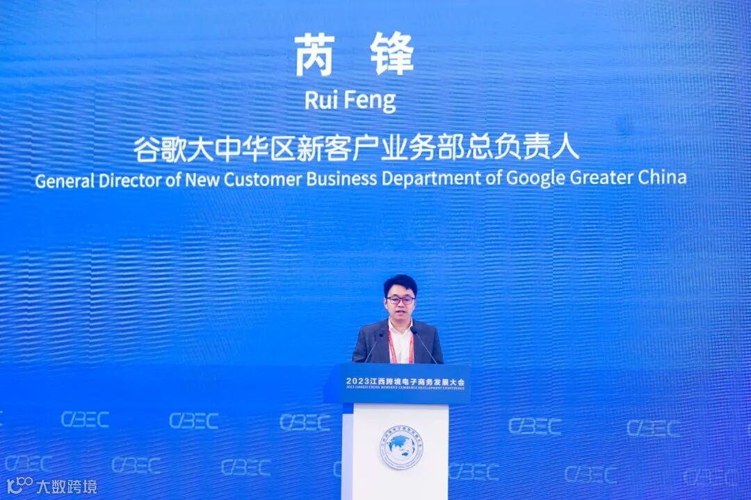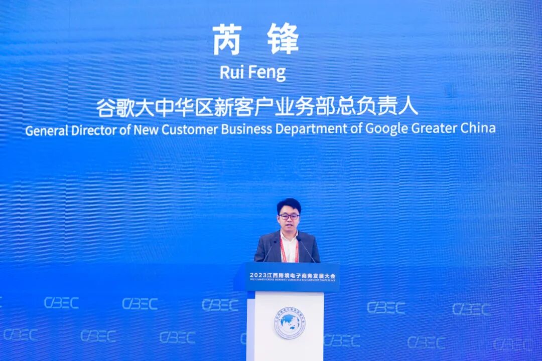 大会邀请了PingPong、京东科技、谷歌、韵达控股、SHOPLINE、阿里巴巴、亚马逊、美客多、昆山衣尚品、链仓科技、新蛋集团等企业重量级人物围绕跨境电商发展的新机遇、新挑战、新思路作专题分享,为进一步推动江西跨境电商发展建言献智。其中,谷歌大中华区新客户业务部负责人芮锋以“谷歌赋能中国制造扬帆海外”为主题作交流分享,阐述了谷歌如何协助中国企业掘金海外市场 。