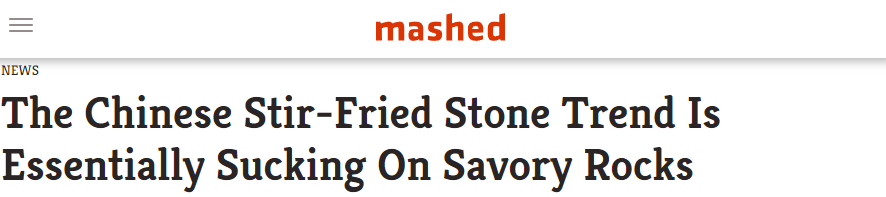 Without a doubt, humankind has crafted countless weird food trends, from Jell-O salads to freeze-dried ice cream. We've even invented Rocky Mountain oysters. However, the recent stir-fried pebbles trend takes funny fads to a whole new level. 毫无疑问,人类创造了无数黑暗食物,从果冻沙拉到冻干冰淇淋, 甚至还发明了洛矶山脉蚝(一种用公牛睾丸制成的菜肴)。然而,最近爆火的炒鹅卵石将奇怪食物再次拉高到了全新的水平。