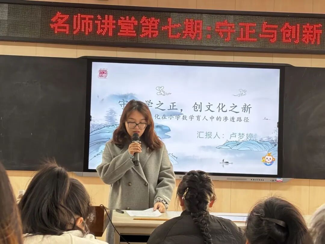 春深日暖,万物生辉。为深入探索传统文化与学科教学的融合路径,华士曙光小学的两位数学老师围绕“守正与创新:传统文化如何渗透于学科育人中”这一主题,立足数学学科特色,分享了在课堂教学中传承中华文化基因的创新实践。