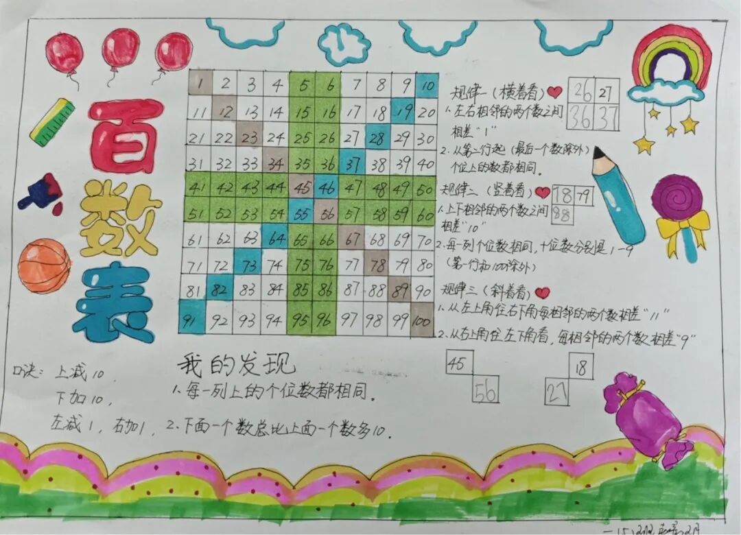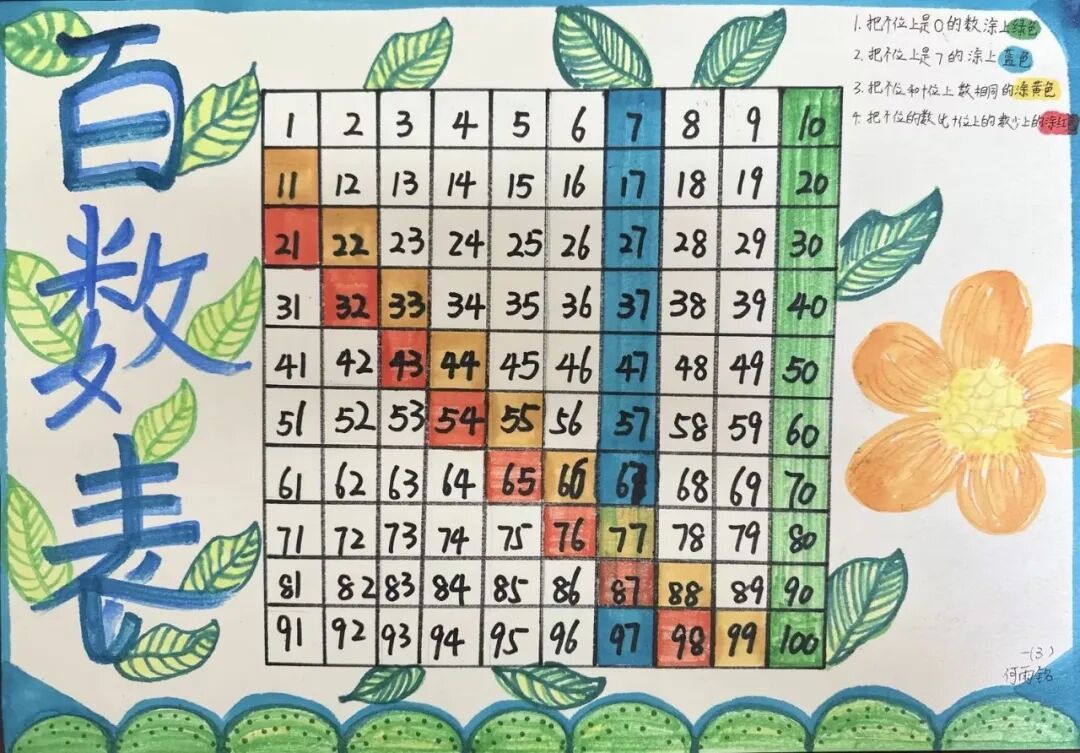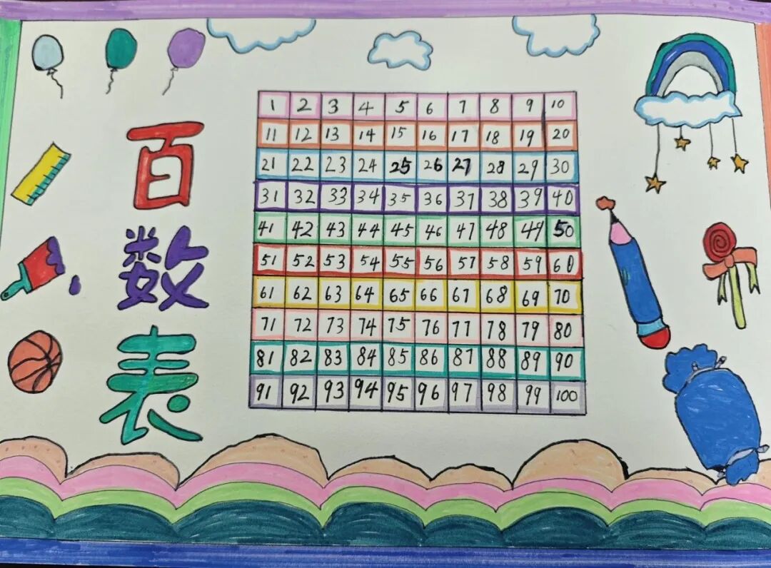 通过百数表的创作,孩子们不仅巩固了课堂知识,还培养了观察力和逻辑思维能力。