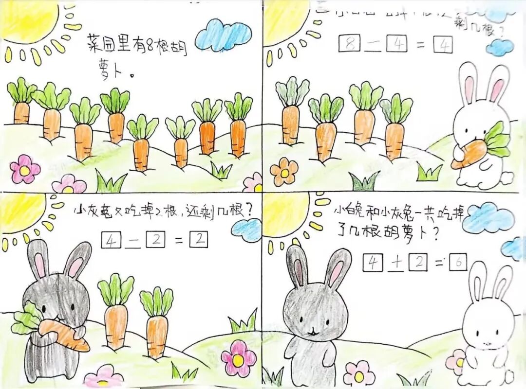 数学连环画是本次寒假作业的另一大亮点。孩子们需要根据数学题目,用连环画的形式讲述一个数学故事。
