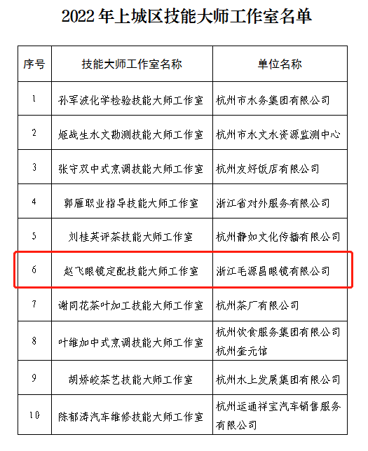 近日,2022年上城区技能大师工作室认定名单公布,智慧城辖区“赵飞眼镜定配技能大师工作室”成功入选。