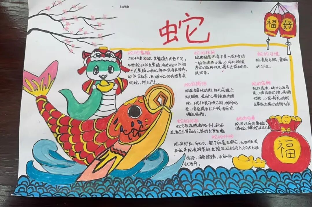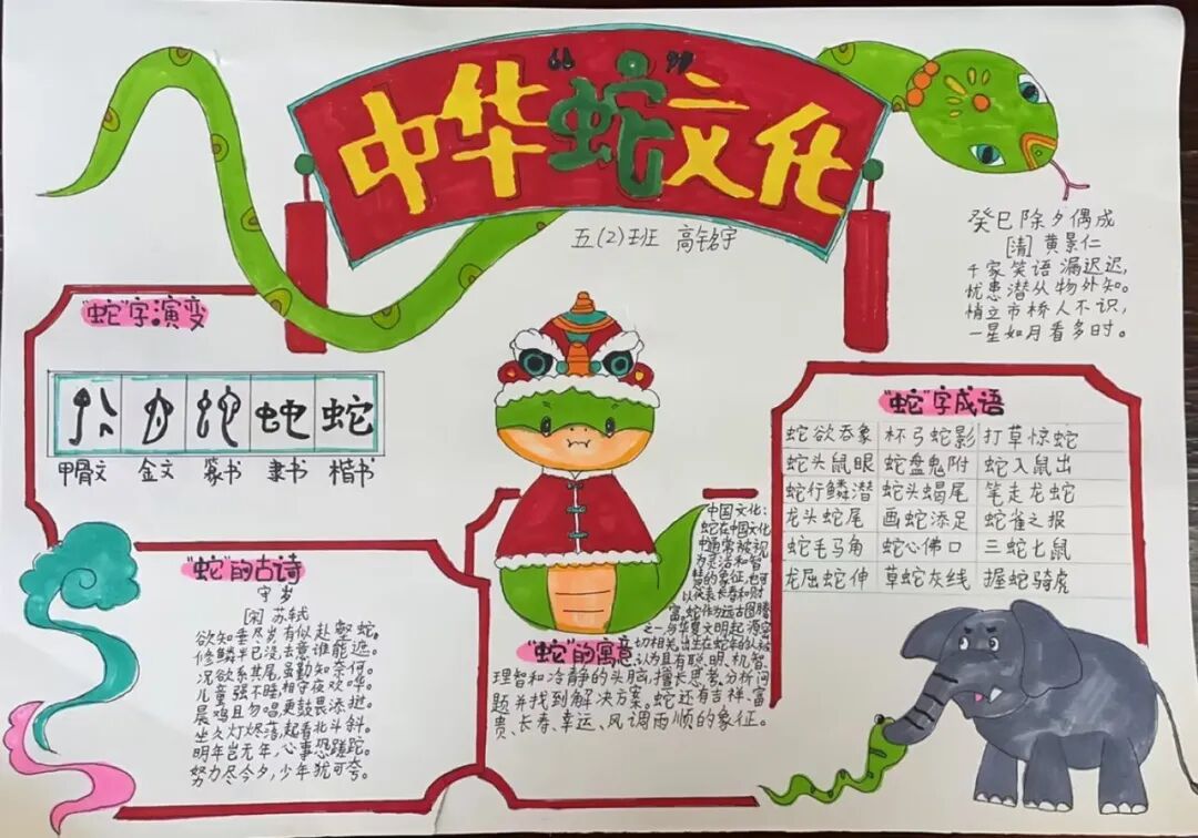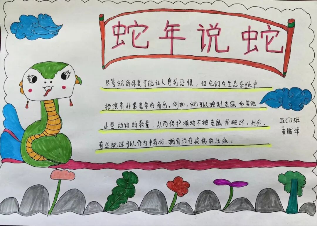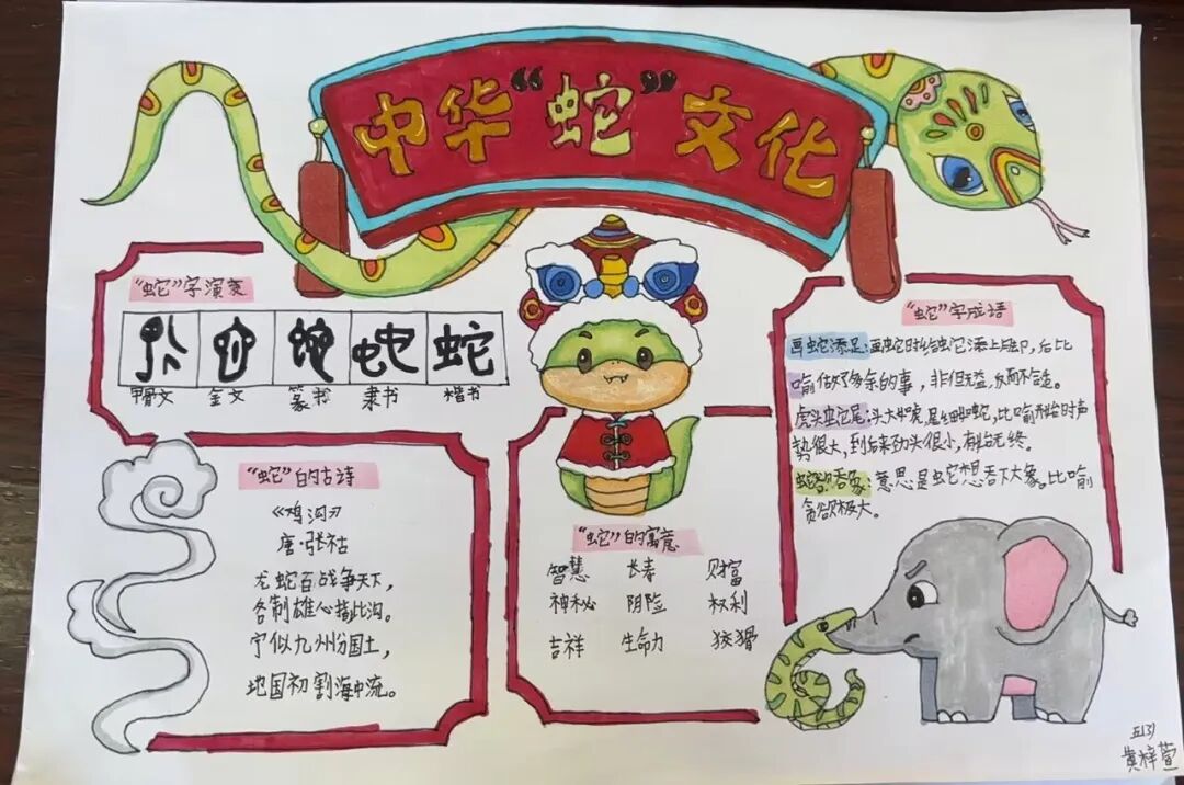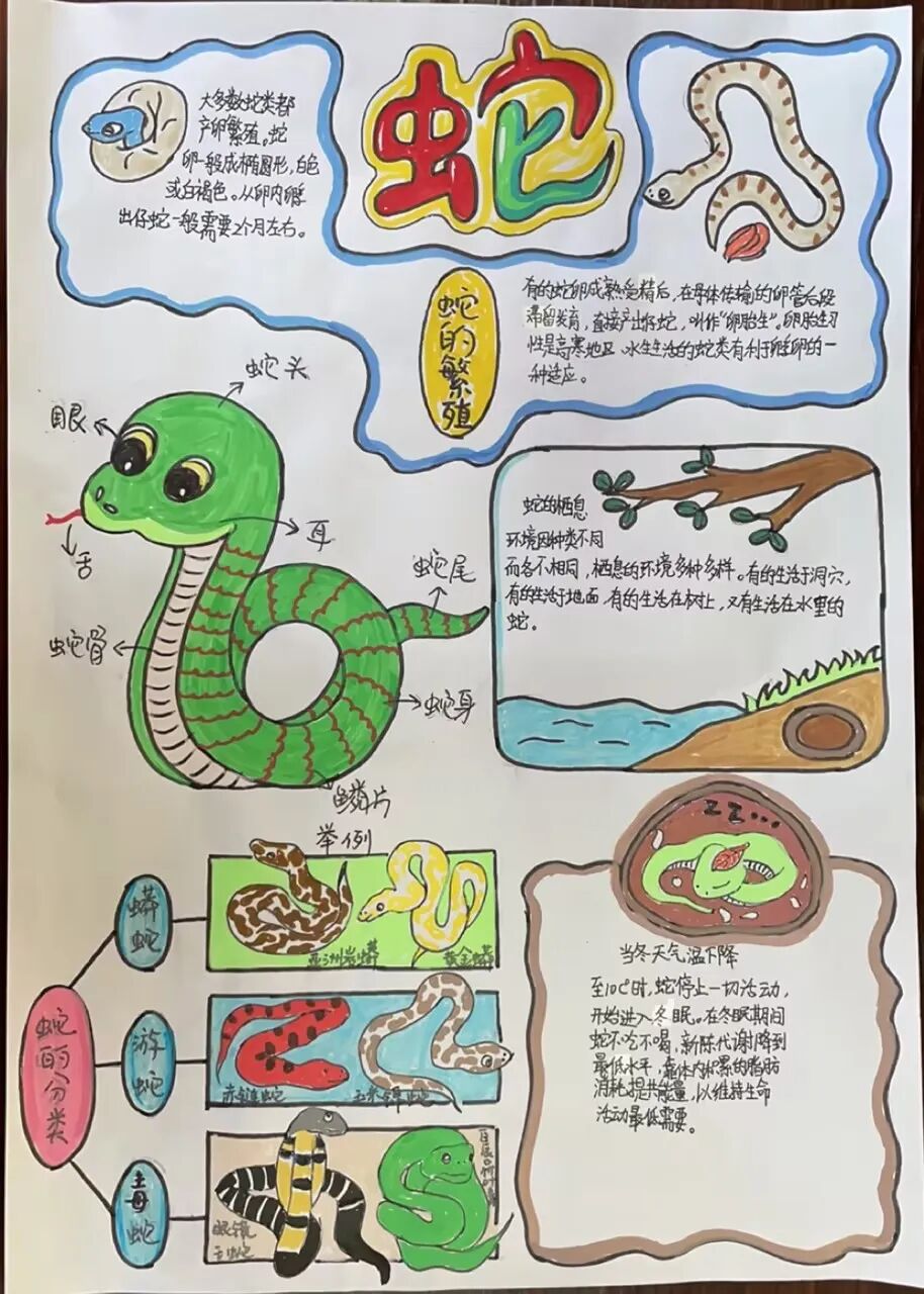 2025年是蛇年,五年级的同学们以“蛇”为研究对象,通过网络,书籍,了解蛇这种动物,用手抄报和思维导图的方式做了精彩的展示。
