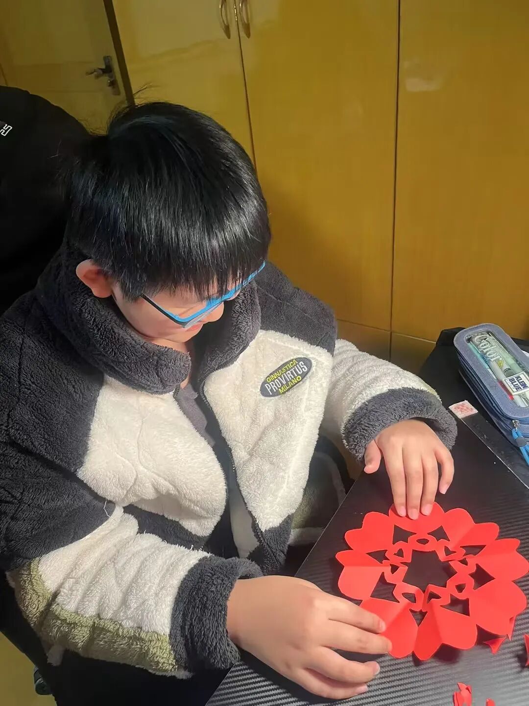 六年级的大孩子已经熟练掌握生活中的各项技能,正用自己的方式庆祝中国年。