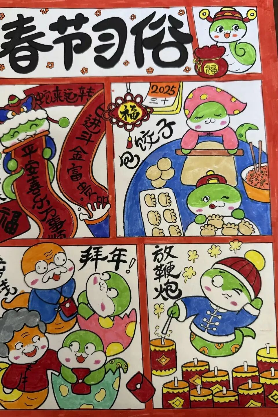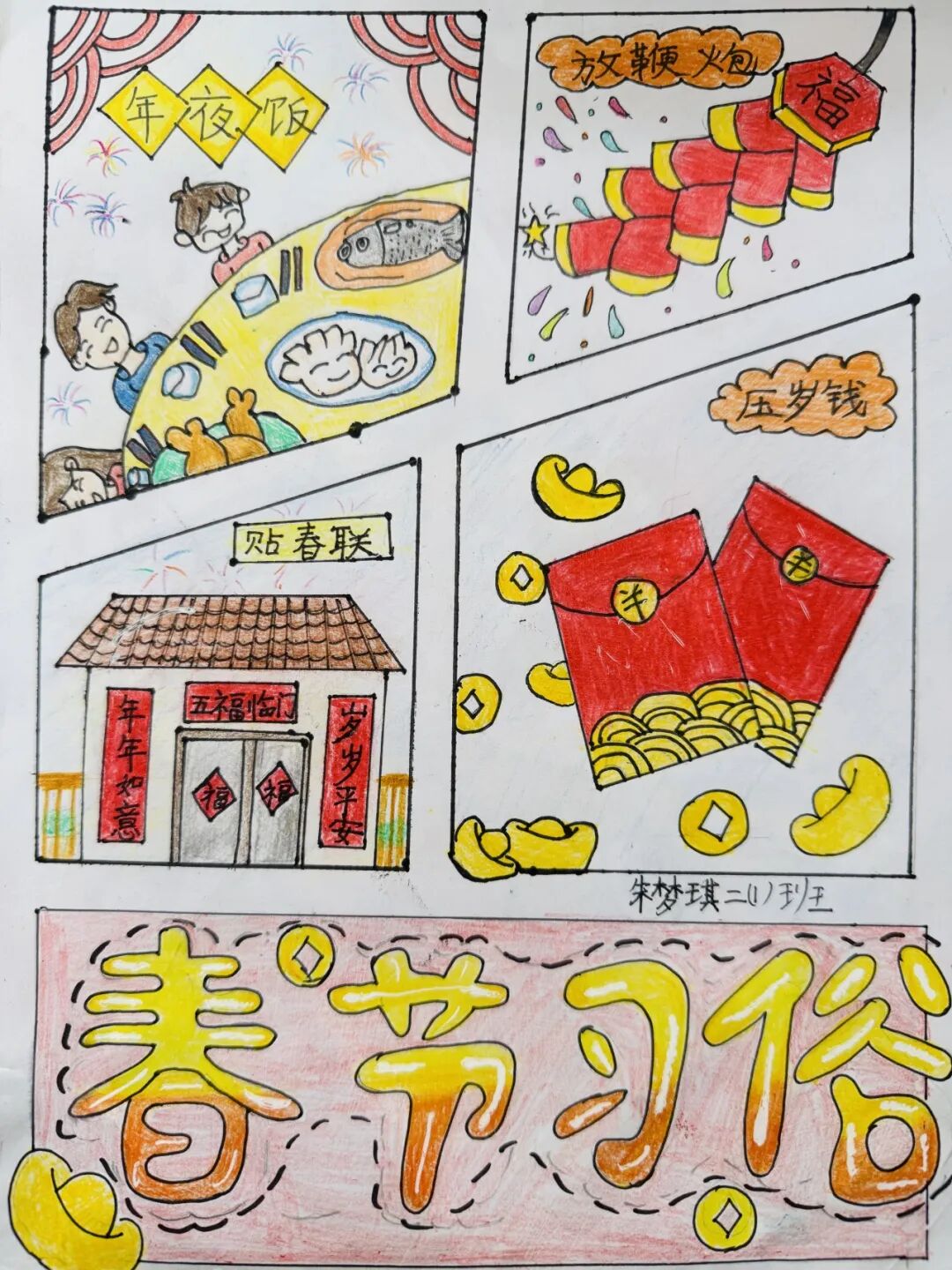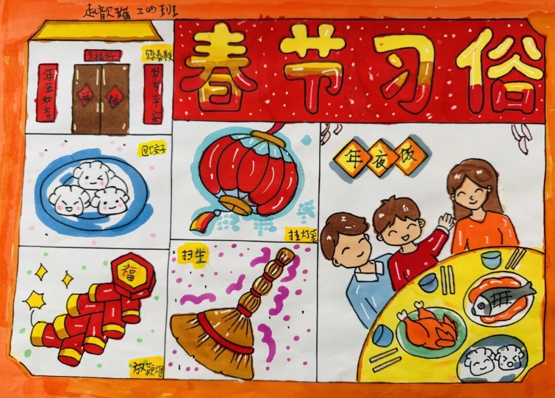 春节是最隆重的一个节日。中国年俗有说不完的故事,道不完的风情。二年级的小朋友们和爸爸妈妈一起聊了春节的习俗,并用连环画的方式,记录下了过春节时经历的习俗。