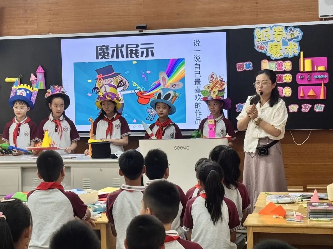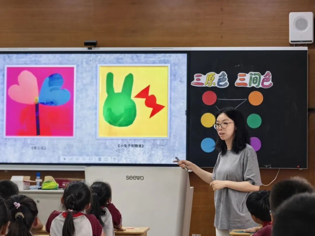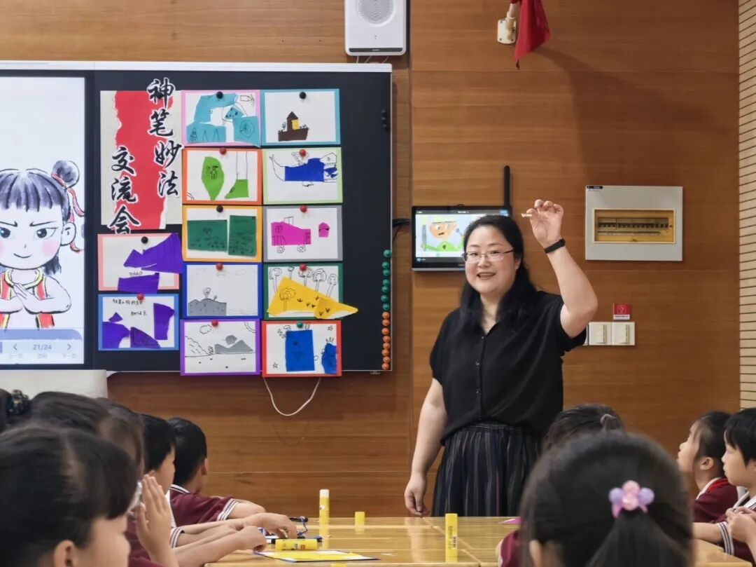 参赛教师们充分发挥骨干教师的示范引领作用,以精湛的教学技艺呈现了一堂堂精彩纷呈的美术课。在课堂教学中,教师们立足美术学科特点,精准把握新课标要求,以学生为主体,巧妙设计教学环节。通过情境创设、实物展示与AI赋能等,引导学生感受艺术的魅力;鼓励学生大胆想象,课堂氛围活跃,学生作品充满童趣,展现了美术学科独特的育人价值。