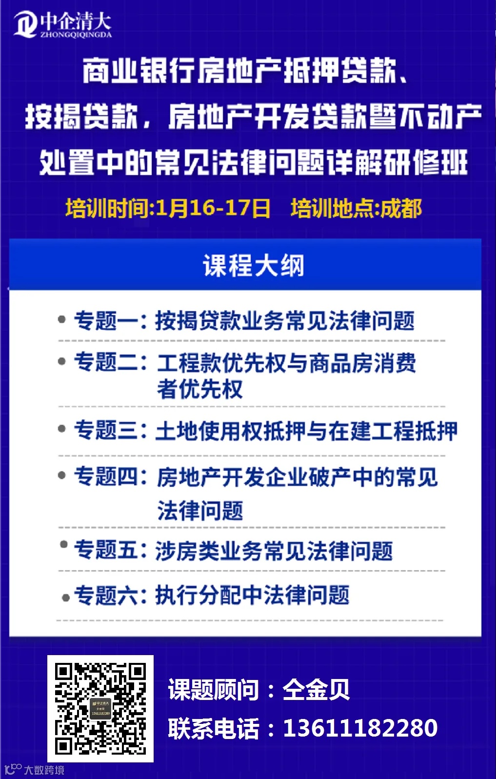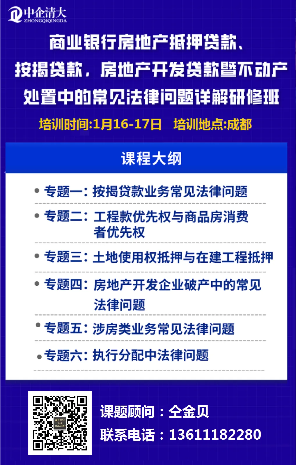 关于商业银行房地产抵押贷款、按揭贷款、房地产开发贷款暨不动产处置中的常见法律问题详解研修班-成都站