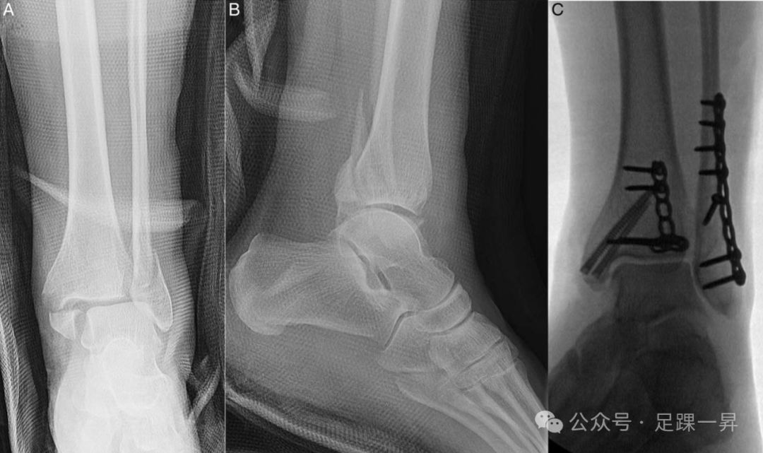 Miller 等报道无论骨折块大小,行后踝骨折块固定的组与因无后踝骨折而未固定后踝、仅行下胫腓联合螺钉固定的组之间,患者报告的疗效评分相当。此外,他们发现后踝骨折块固定组在至少 1 年的随访中维持复位。基于研究结果,他们建议对后踝骨折进行解剖重建,无论骨折块大小,以重建切迹,指出下胫腓联合固定可能涉及二次手术,并强调后踝固定可实现更解剖的复位。