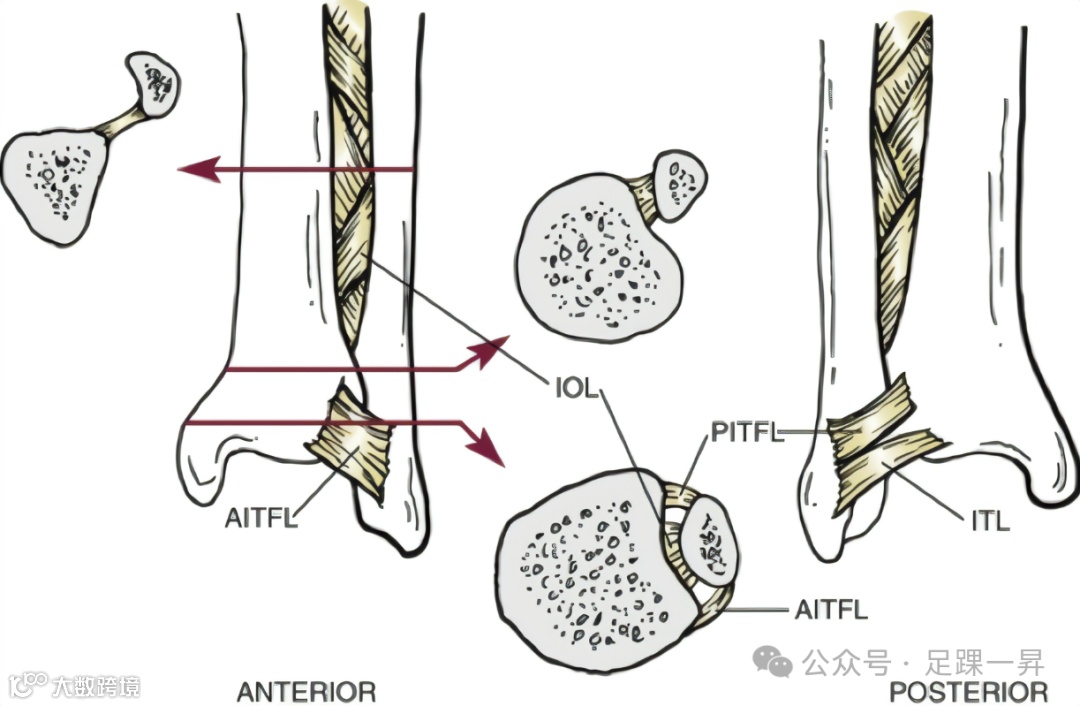 然而,后踝(PM)固定的作用仍存在争议。传统上,下胫腓联合固定装置用于防止术后联合增宽并辅助韧带愈合。但计算机断层扫描显示,这种方法常导致下胫腓联合复位不良。最近的生物力学和影像学研究强调了后踝骨折块在下胫腓联合稳定性中的关键作用,因其附着于下胫腓后韧带(PITFL),该韧带是下胫腓联合的强稳定结构。因此,越来越多的研究表明,后踝固定可减少对联合固定装置的需求,同时获得相当的临床效果,支持在旋转性踝关节骨折中固定后踝。