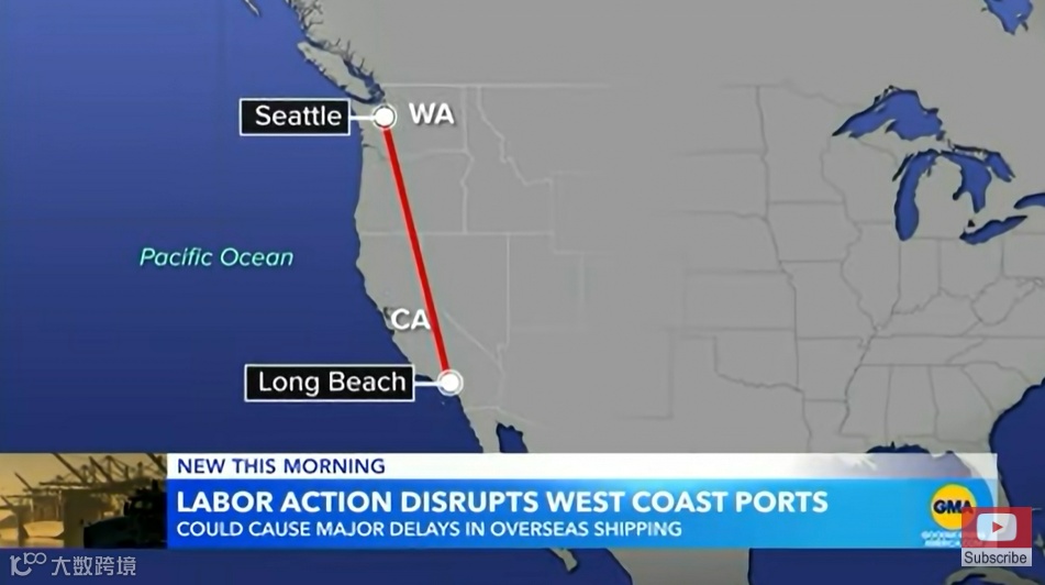目前,围绕美国西海岸港口的劳资纠纷仍在持续。PMA警告称,目前美国的大量出口货物被滞留在码头上。西海岸港口的运营,对美国供应链至关重要,西海岸港口贸易大约贡献了全美GDP的12%。