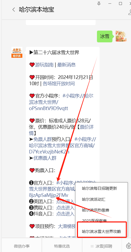 如果找不到预约二维码,可以通过“哈尔滨冰雪大世界”官方微信公众号查看。