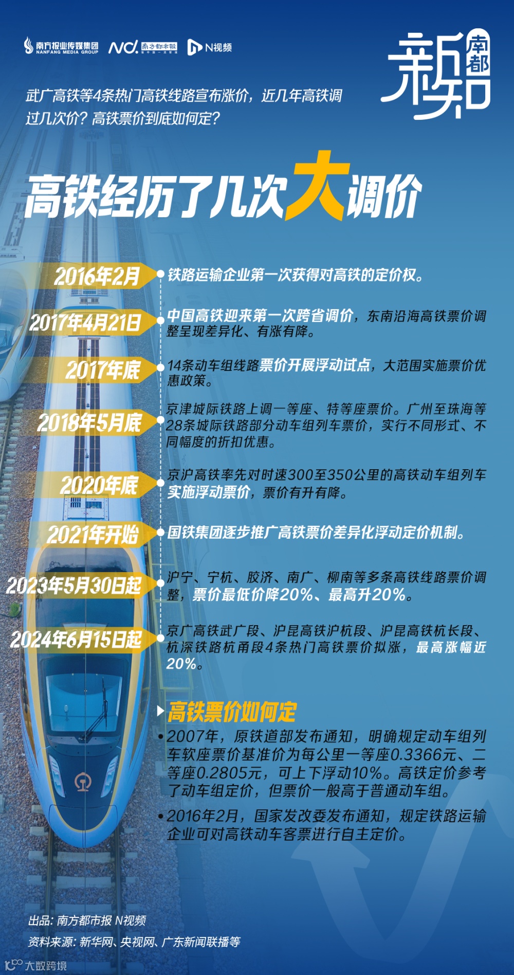 2024年6月15日起,铁路12306官网对四条热门线路的高铁票价进行调整,价格区间变得更大。
