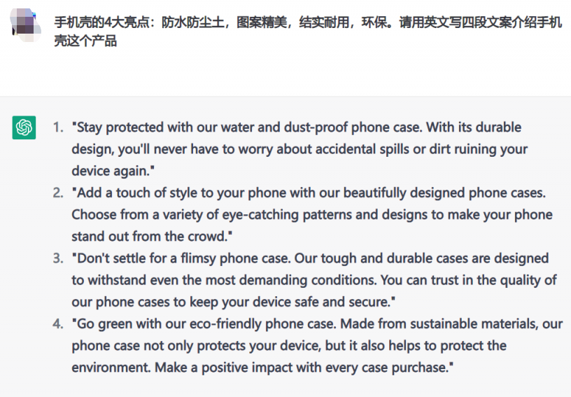 并且经过这段时间的“尝鲜”之后,一批跨境人认为,国内做跨境电商的卖家,可以尝试使用ChatGPT,很大程度上能够克服语言障碍以及生硬的表达。