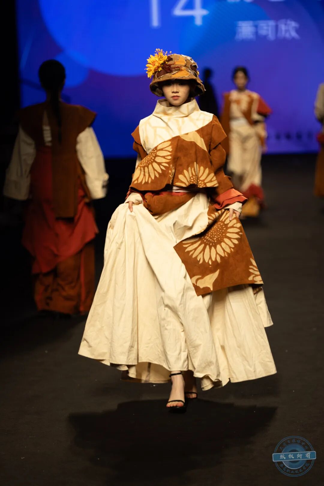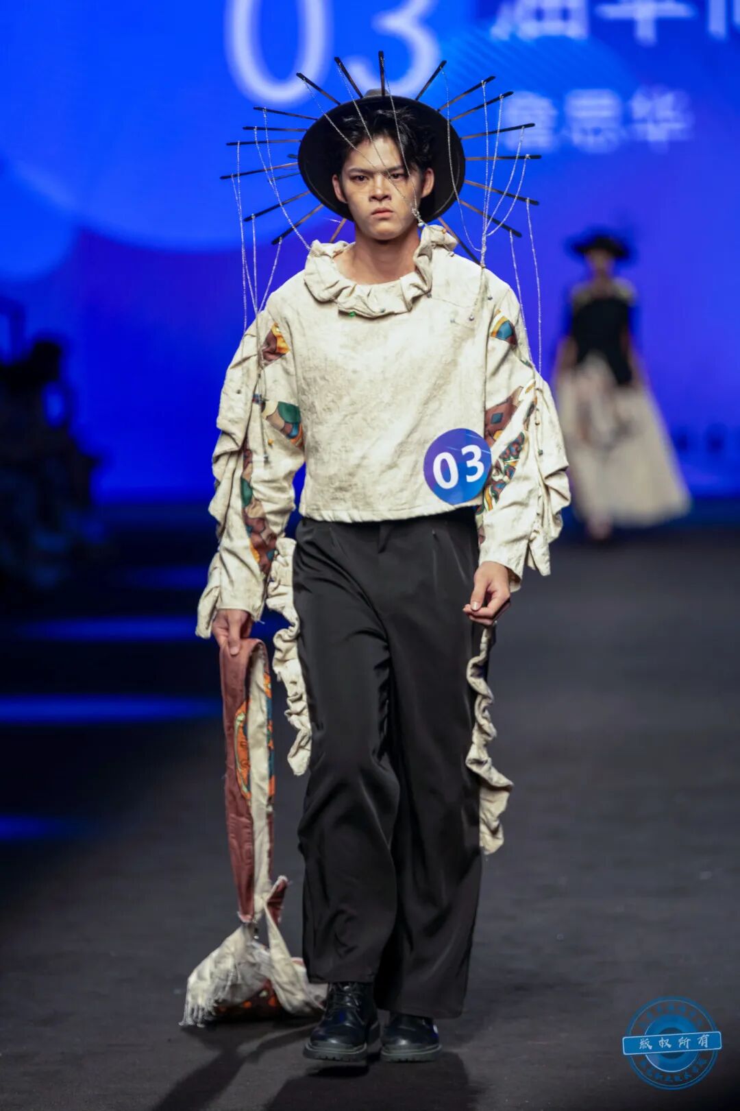 本届学生将视角聚焦于服饰文化与艺术形态,通过面料改造、立体剪裁,以及对传统文化的解构与未来科技的畅想,运用印染、刺绣、拼接等技术,展现了他们独特的创意表达。每一针脚都蕴含着对时尚的热爱,每一道褶皱都诉说着设计的故事。最终,他们凭借独特的创意设计和精湛的工艺,赢得了现场观众的阵阵喝彩。