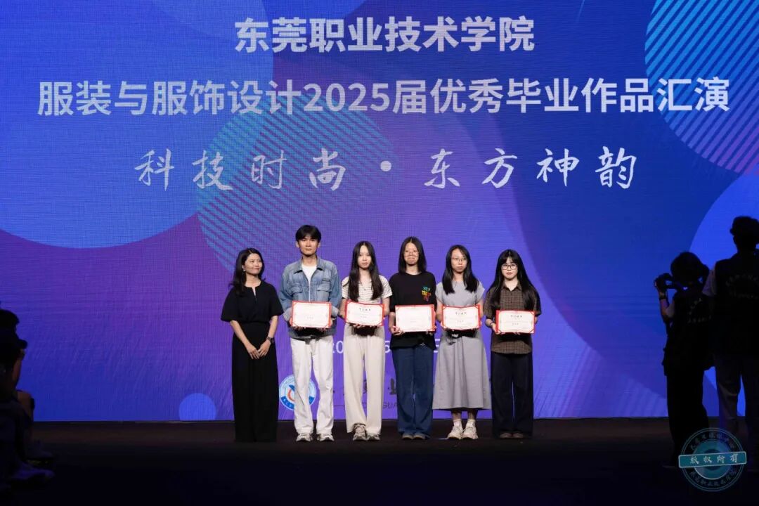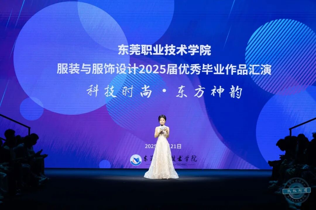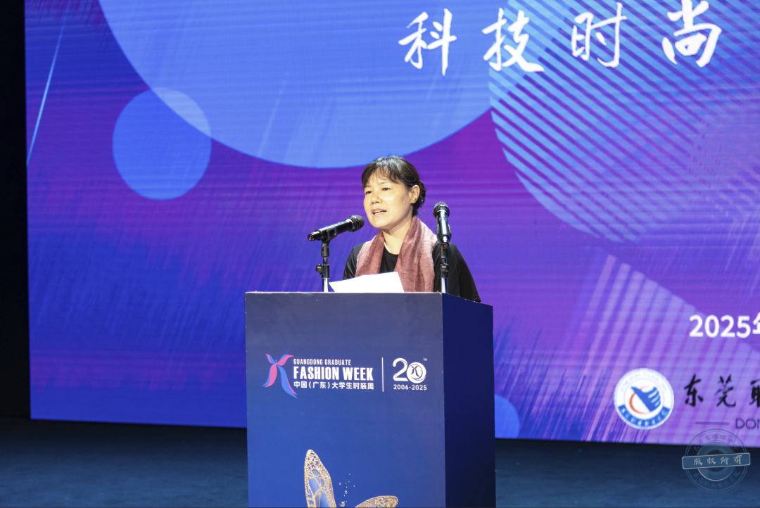 活动伊始,我校创意设计学院党总支书记车美娟致辞。她对到场领导、企业嘉宾、行业专家等表示热烈欢迎。她介绍道,东莞职业技术学院是国家“双高计划”建设单位,而创意设计学院的服装与服饰设计专业则是学校的特色品牌专业。该专业借助东莞制造业优势,构建以“企业设计项目”为载体的人才培养与实践教学体系,与大朗镇政府及多家企业深度合作,学生就业率连续多年达100%。她表示,此次展演从94名毕业生作品中精选20个系列展示,凝聚着师生心血,展现了我校创意设计学院服装与服饰设计专业建设与人才培养成效。