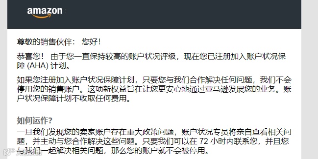 经过了解,已有多个卖家反馈已经成功注册加入了亚马逊账户状况保障计划(AHA),还有部分符合条件的卖家账户正处于审核状态。