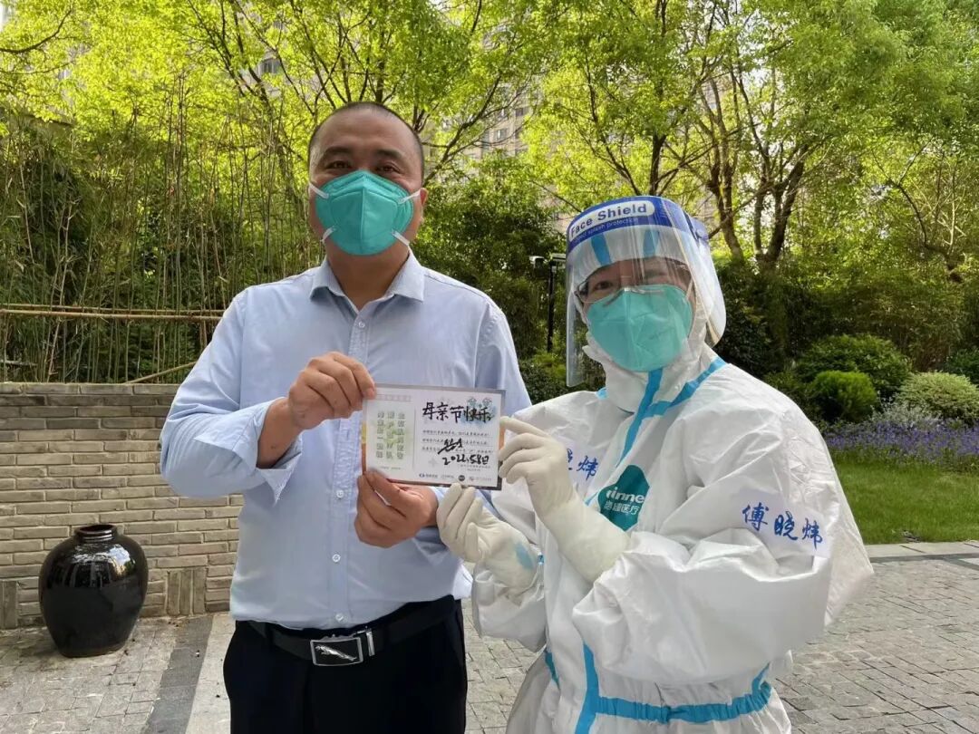 疫情防控时期,为减少人员接触避免交叉感染,对物资来源管控较为严格,无法自行购买鲜花的焦士杰提前和酒店协商,与工作人员一起在酒店的花坛里采集了一些花,在当天晚上送给了辛苦一天的护士们。母亲节那天,焦士杰提前写好70多张祝福卡片,送给浙医五队已经成为母亲的护士们。礼物虽小,然而感动却是持久的。