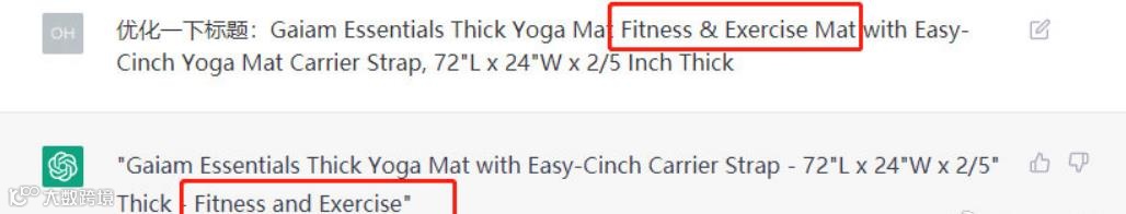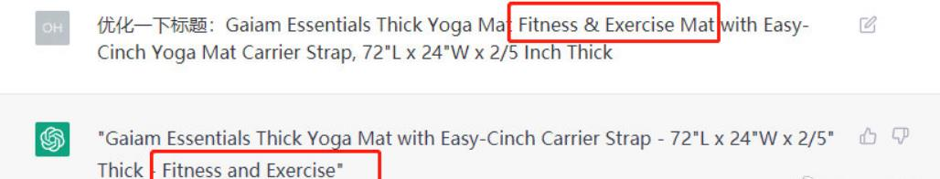 为了验证这个问题, 一位行业老鸟做了一个实验,把亚马逊yoga mat品类中TOP3的标题放到ChatGPT中优化,得出以下结果: