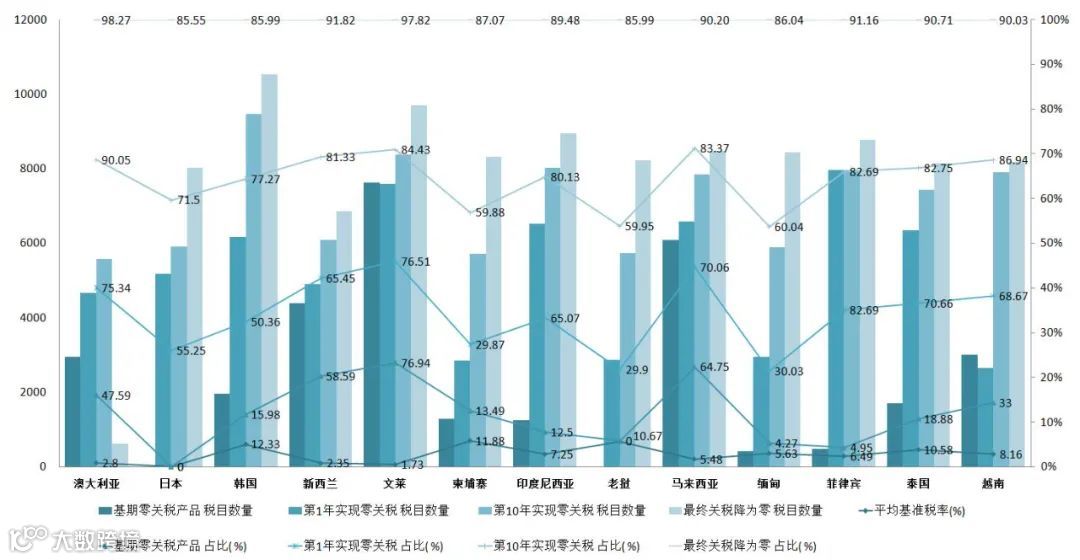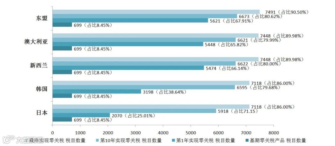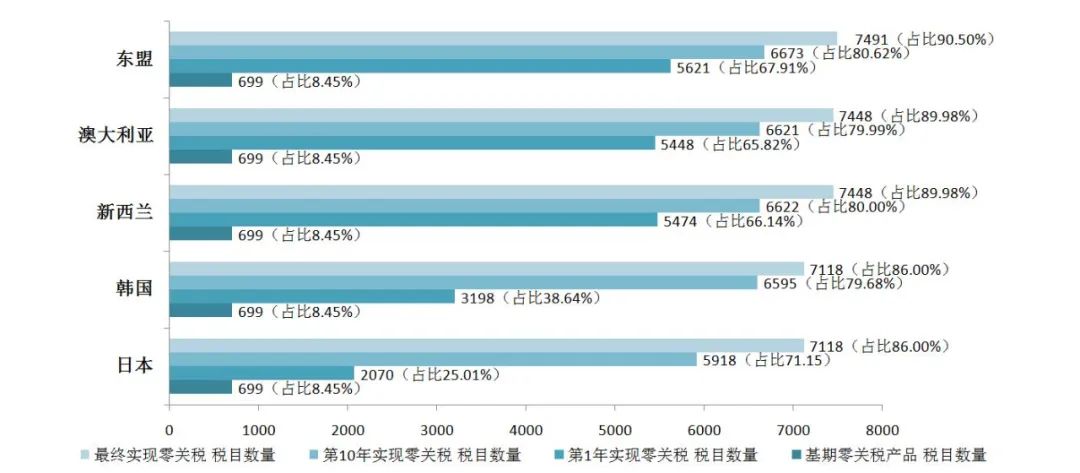 中国对其他RCEP缔约方关税减让安排(数据来源:根据中国对东盟、澳大利亚、新西兰、韩国、日本的关税承诺表整理。)