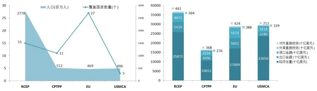 全球主要自由贸易区宏观经济指标(数据来源:世界银行、UNCYAD)