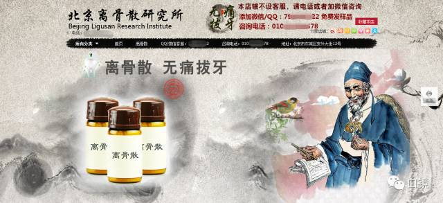 笔者闲逛某宝,发现有一家号称“北京离骨散研究所”的店铺在卖这种药,简单查了一下,挺有意思。