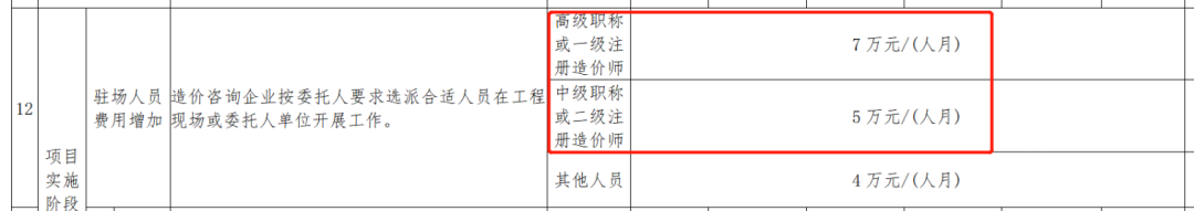 北京:高级职称或一级注册造价师7万元/人月;中级职称或二级注册造价师5万元/人月;其他人员4万元/人月。