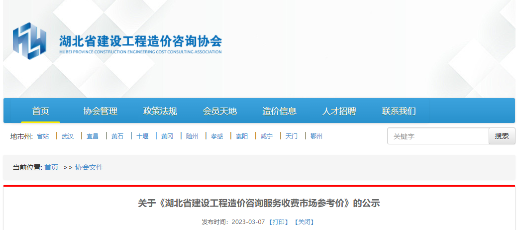 2023年3月,湖北发布关于《湖北省建设工程造价咨询服务收费市场参考价》的公示。
