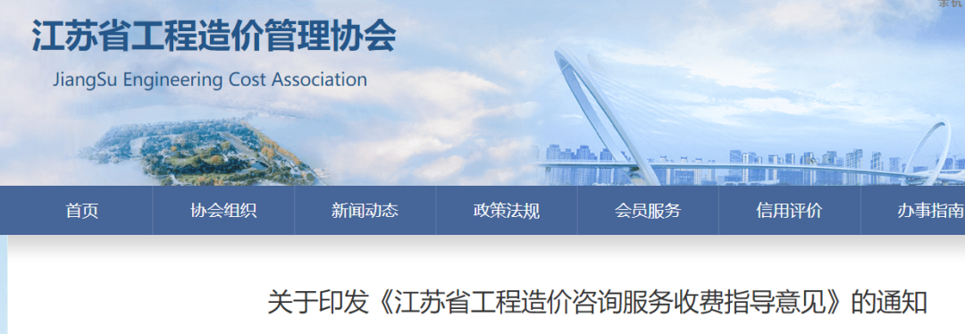 2022年7月,江苏印发《江苏省工程造价咨询服务收费指导意见》(苏建价协(2022)7号),自2022年8月1日起施行。
