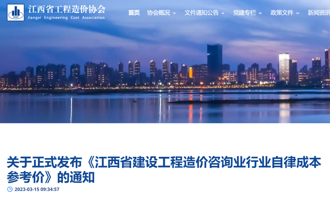 2023年3月,江西正式发布《江西省建设工程造价咨询业行业自律成本参考价》(赣价协〔2023〕4号),自2023年1月1日起在全省行业中正式实行。