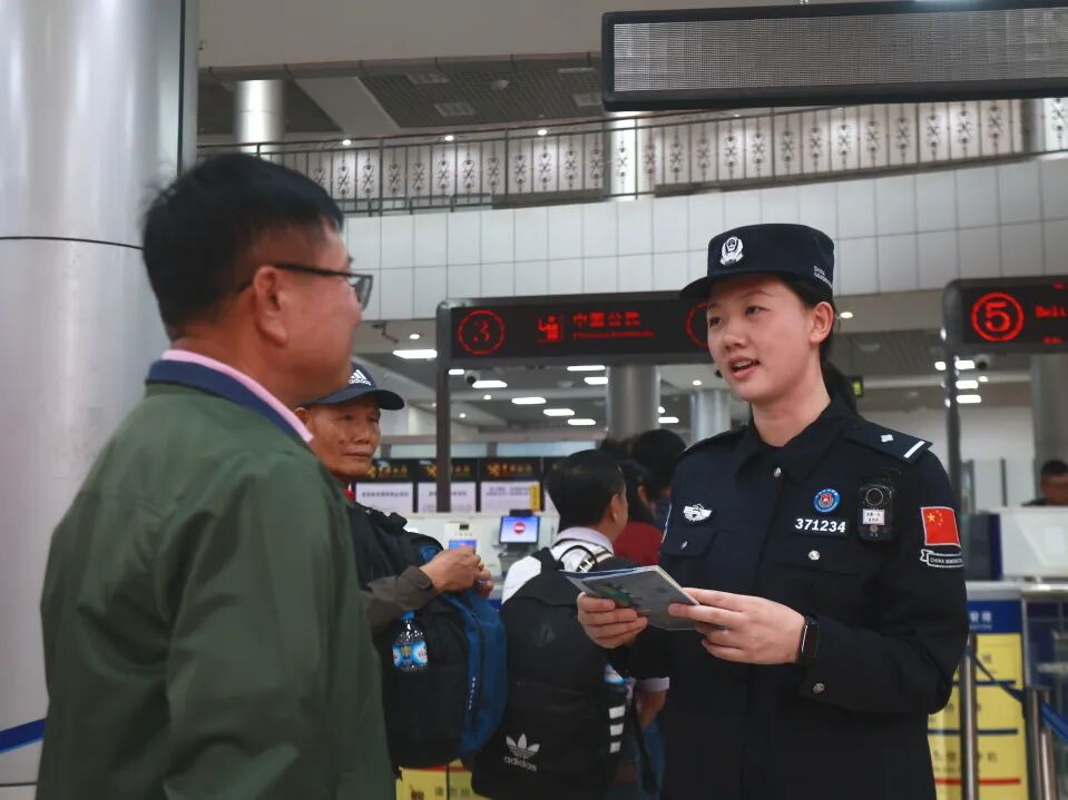 为全面服务保障免签新政落地实施,切实做好首个东盟国家免签旅游团入境边防检查工作,磨憨出入境边防检查站在出入境大厅同步开展免签政策宣传与解读工作,通过配备引导员、电子屏滚动播放免签流程图解等方式,确保广大旅客能够第一时间准确把握政策。