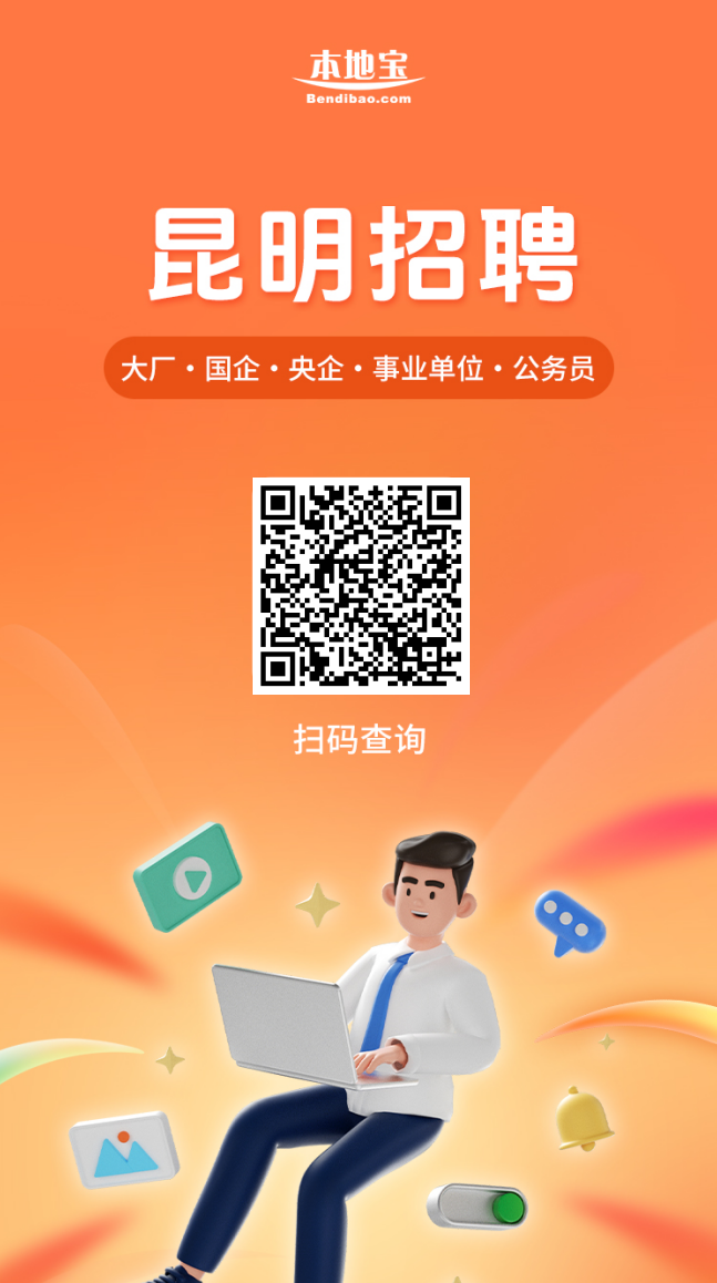 小提示:大家可以登录猎聘网昆明频道网(https://www.liepin.com/city-kunming/)进行网络报名。或者也可以关注【昆明本地宝】微信公众号,在聊天对话框发送【招聘】,再点击【国企招聘汇总】,即可获取招聘信息及报名入口。(本地宝仅提供招聘信息及报名入口,非主办方)
