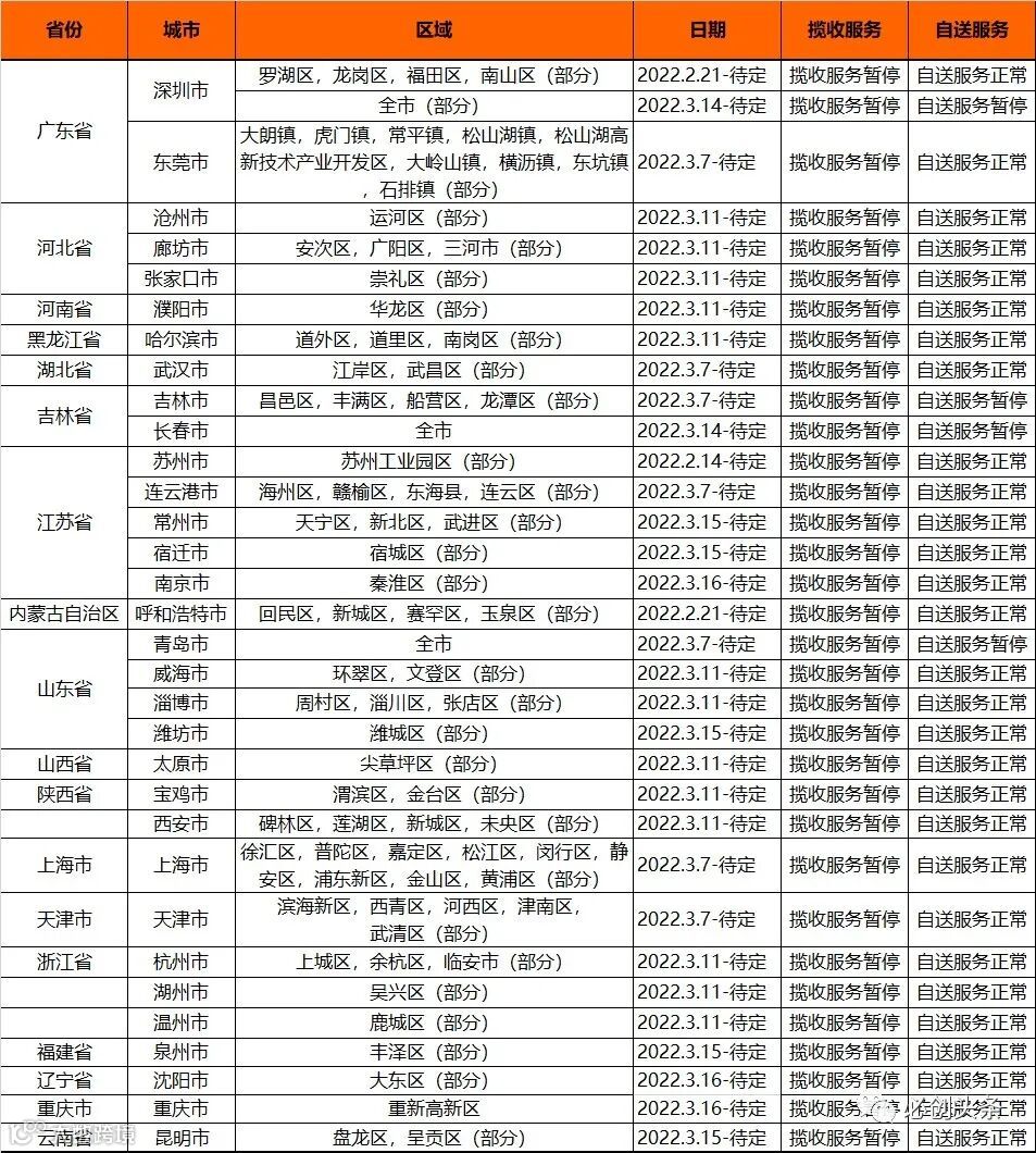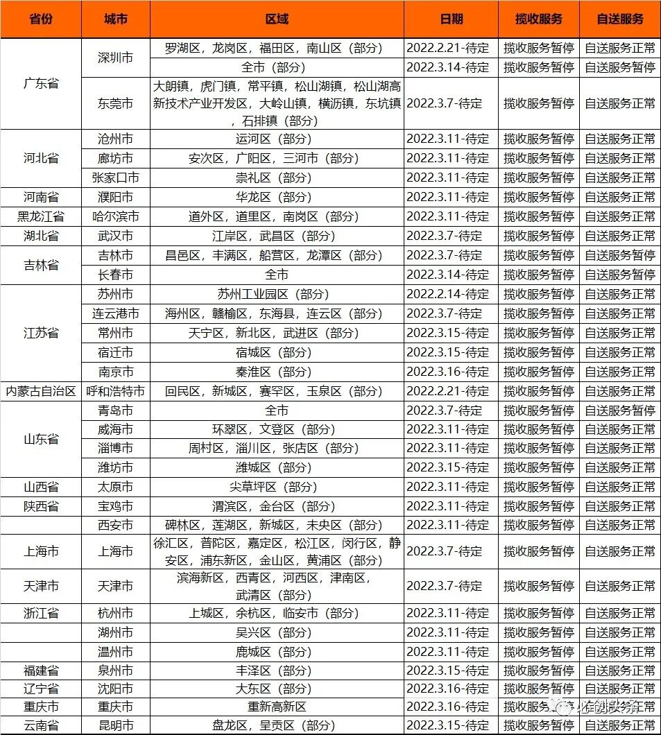 2 SpeedPAK受疫情影响城市或地区包裹揽收、转运服务将延迟