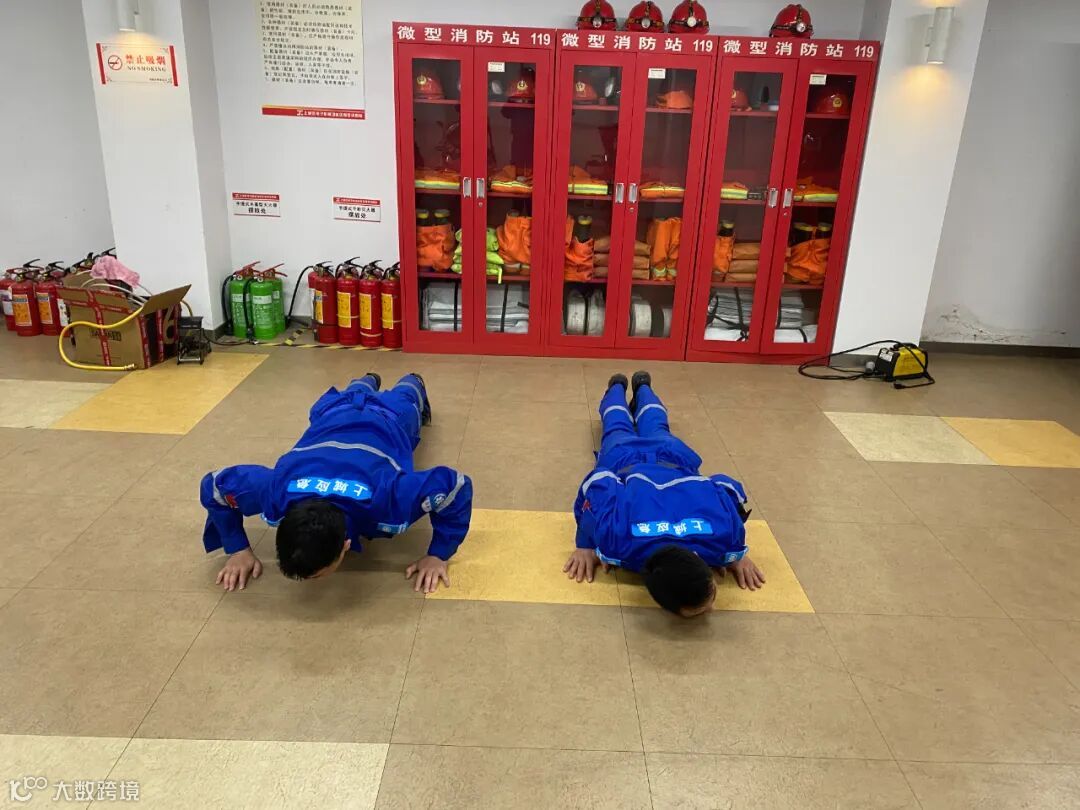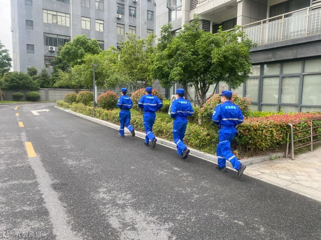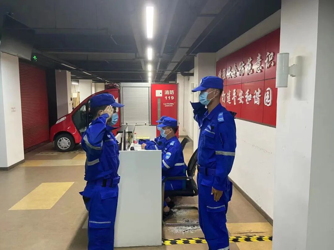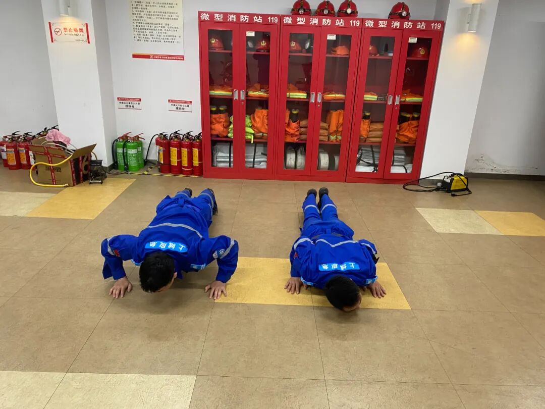 “一、二、三、四,跑步走”,每天清晨,在园区,我们总能听到响亮高亢的口号,看到一群人有条不紊地操练,接水带、俯卧撑、往返跑、练设备……他们身着“火焰蓝”,眼神坚毅、步伐铿锵,救援灭火动作规范、训练有素,每日早晚操练交接,只为随时应急、救援有力。应急服务站里常年配备四轮及二轮微型消防救援车、消防柜、救援服、水枪水带等消防器材,并且24小时值班值守。
