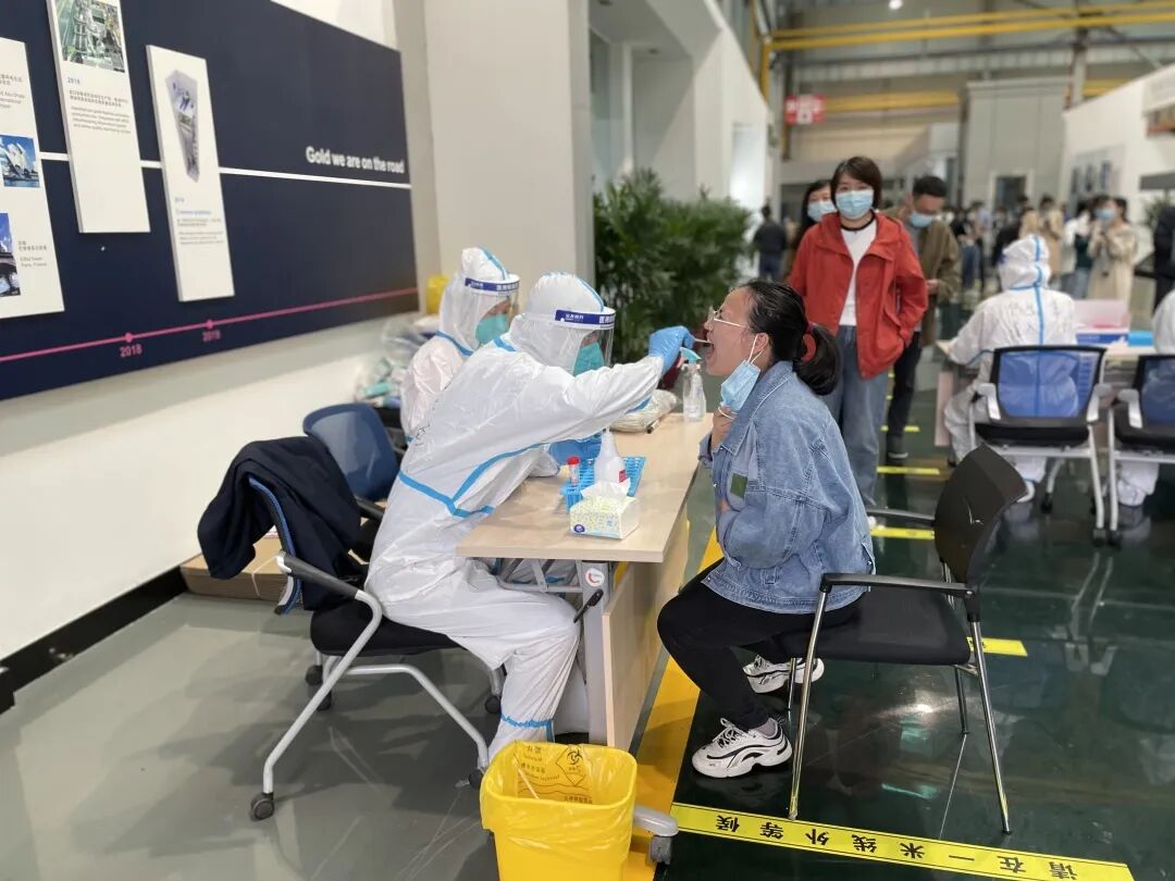 在奥的斯机电党委号召下,一支有医学背景的党员为主的志愿者团队迅速集结,经过专业培训取得合格证书后,五十余人分为小组,每周二和周四为企业员工提供核酸采样检测服务。