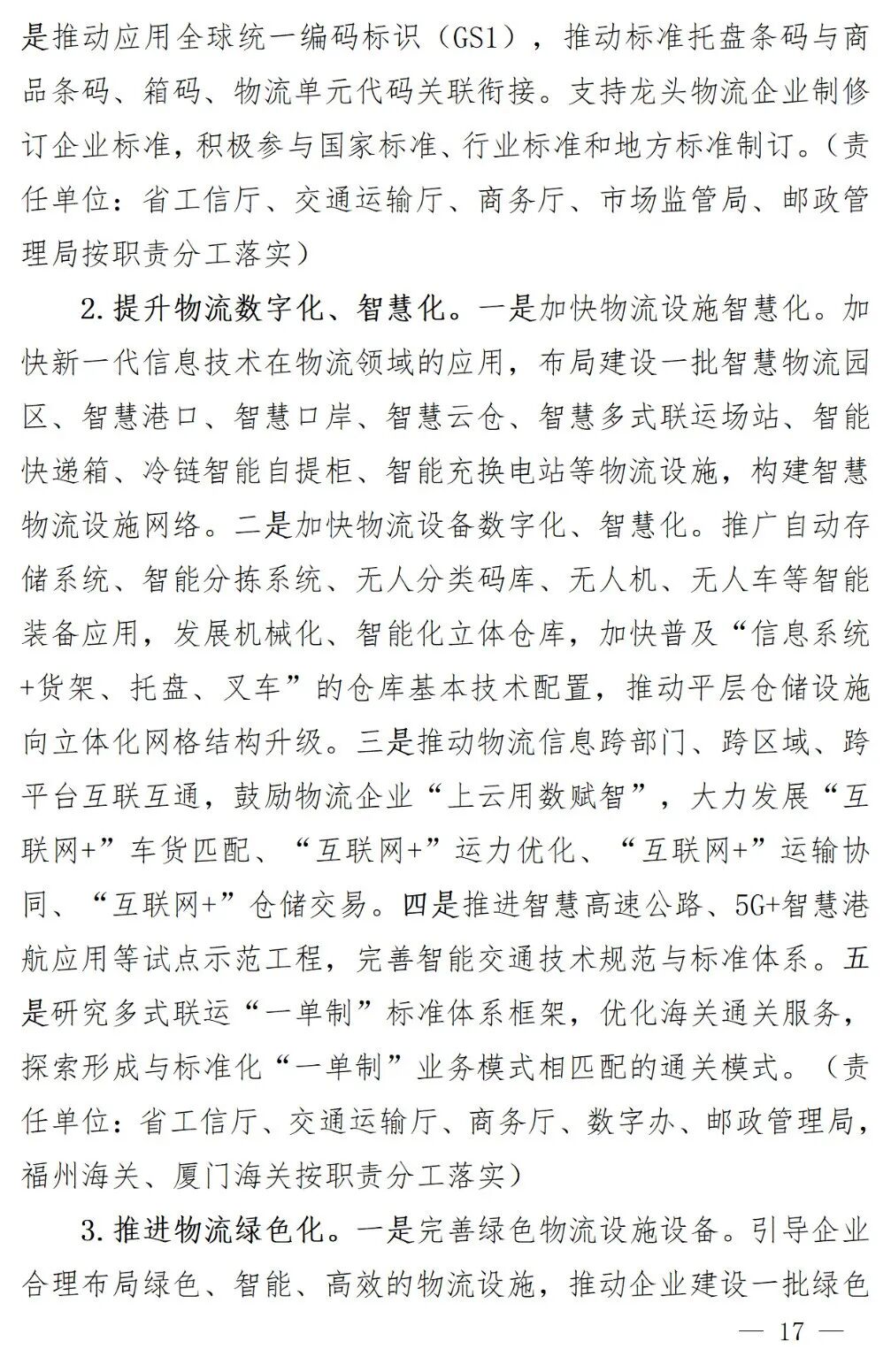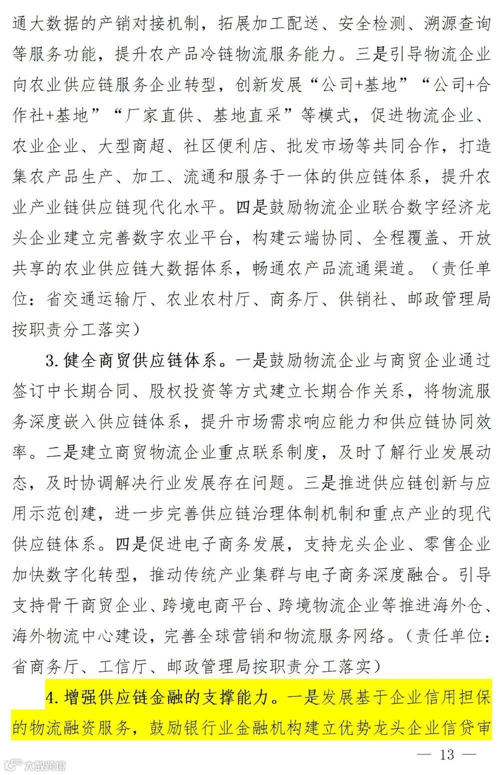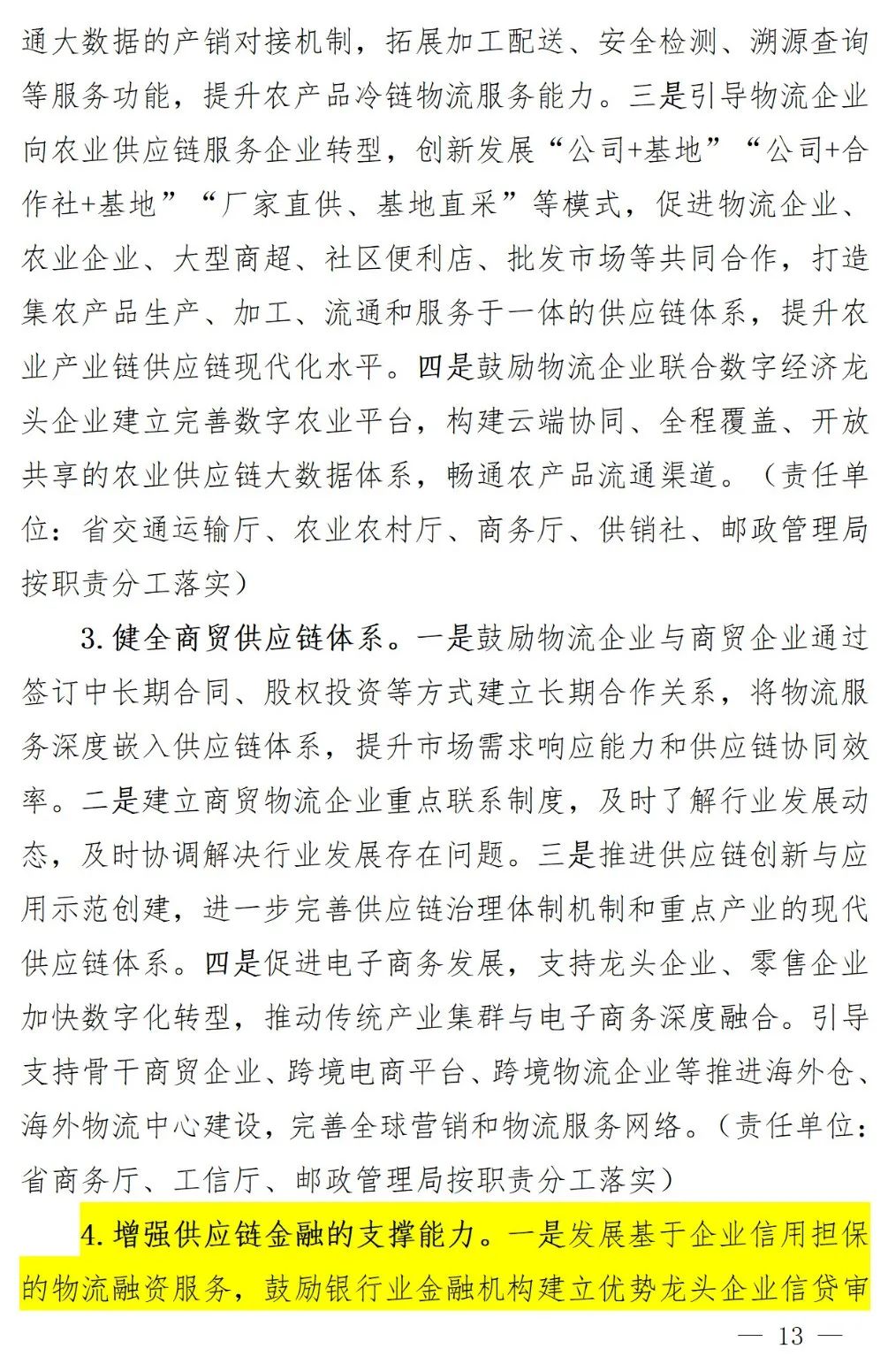 近日,福建省工业和信息化厅等六部门印发《福建省现代物流业高质量发展实施方案(2023—2025年)》。《实施方案》提出,深化物流链与产业链供应链融合发展,增强供应链金融的支撑能力。一是发展基于企业信用担保的物流融资服务,鼓励银行业金融机构建立优势龙头企业信贷审批绿色通道,为物流龙头企业快捷配置信贷资源、增加资金供给;加强物流企业水电气、纳税、社保、司法等信用信息在“金服云”等平台共享应用,为金融机构服务中小物流企业提供信用数据支持。二是完善基于货物价值担保的物流融资服务,优化发展仓单质押、存货质押、在途货物抵押、应收账款融资等物流金融业务,支持物流流动资金贷款、短期垫资贷款和中小企业供应链金融贷款。三是优选合适的产业供应链物流基础设施项目发行不动产投资信托基金(REITs),拓宽社会投资渠道和扩大有效投资。