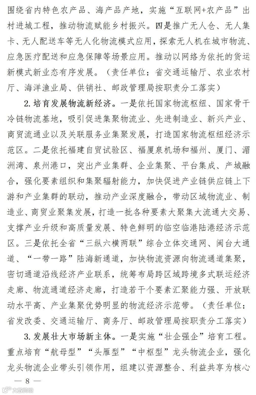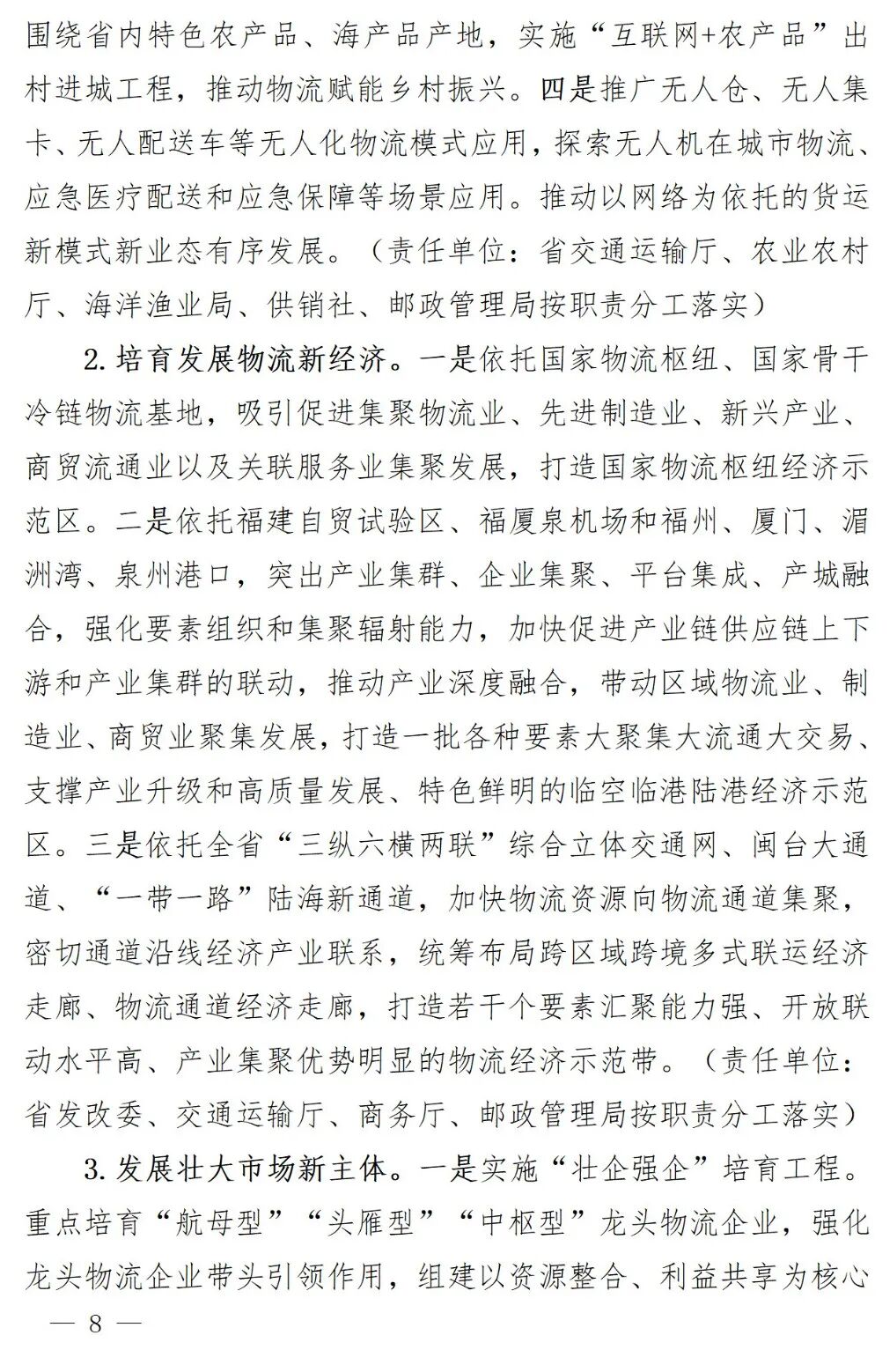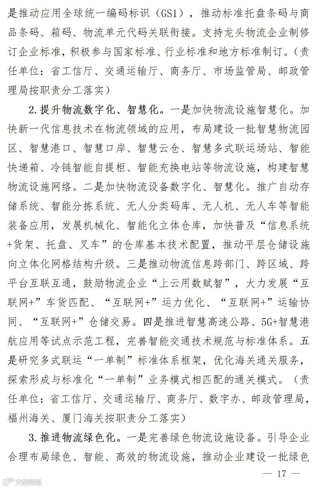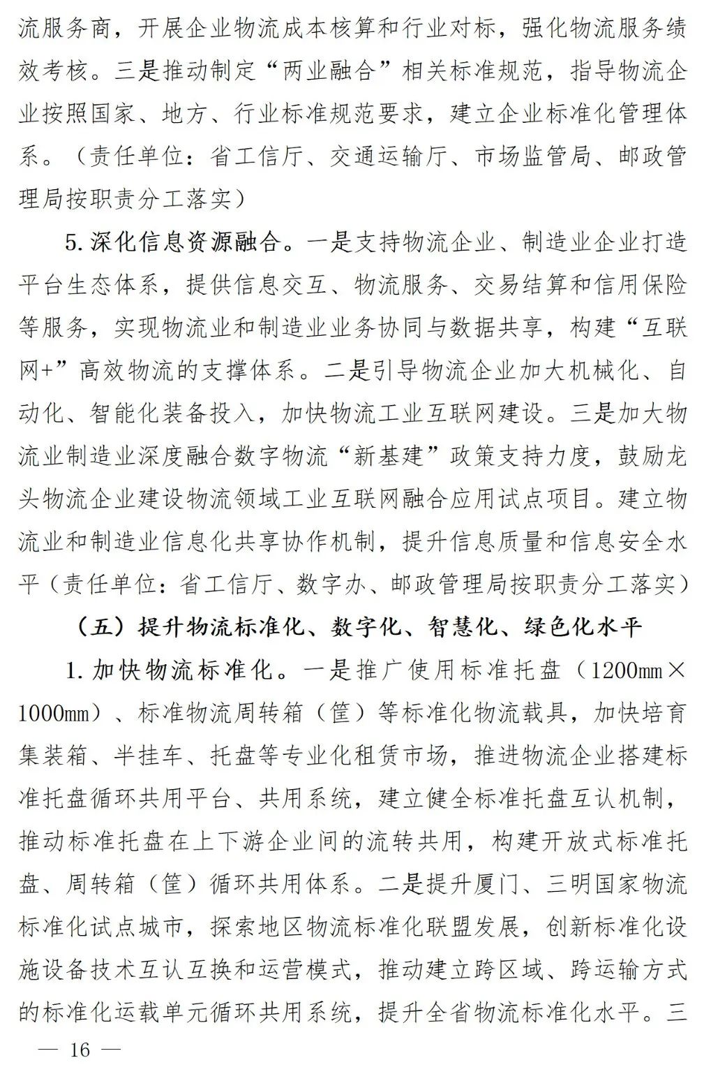 近日,福建省工业和信息化厅等六部门印发《福建省现代物流业高质量发展实施方案(2023—2025年)》。《实施方案》提出,深化物流链与产业链供应链融合发展,增强供应链金融的支撑能力。一是发展基于企业信用担保的物流融资服务,鼓励银行业金融机构建立优势龙头企业信贷审批绿色通道,为物流龙头企业快捷配置信贷资源、增加资金供给;加强物流企业水电气、纳税、社保、司法等信用信息在“金服云”等平台共享应用,为金融机构服务中小物流企业提供信用数据支持。二是完善基于货物价值担保的物流融资服务,优化发展仓单质押、存货质押、在途货物抵押、应收账款融资等物流金融业务,支持物流流动资金贷款、短期垫资贷款和中小企业供应链金融贷款。三是优选合适的产业供应链物流基础设施项目发行不动产投资信托基金(REITs),拓宽社会投资渠道和扩大有效投资。
