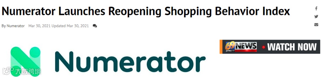数据分析公司Numerator上周发布零售重新开放购物行为指数,尽管消费者返回店内购物,但2021年迄今为止的在线销售量比2020年水平高出约1.7倍,比2019年水平高出约2倍。