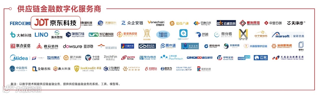 在生态图谱的定义中,供应链金融数字化服务商是指“以数字技术赋能供应链金融业务,提供供应链金融业务的系统、工具、模型等”。也就是说,这些入围者必须具备专业的行业know-how,对供应链金融不同环节的产品设计非常熟悉,并且具备强悍的IT系统搭建能力和数字科技能力。在这个生态位中,包含京东科技、汇融数科、小硕数据科技、众企安链等为代表的数十家企业。