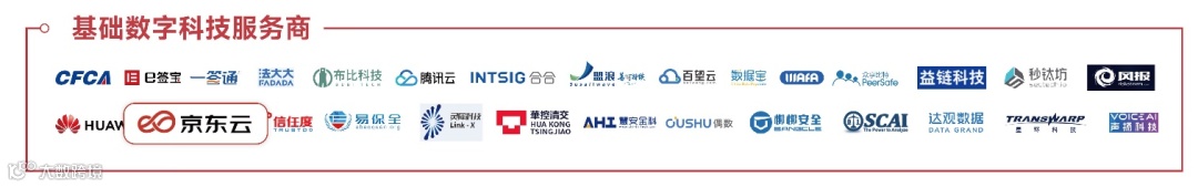 在生态图谱的定义中,基础数字科技服务商,顾名思义是指为上层供应链金融的数字化服务提供底层的科技服务,包括云计算、区块链、大数据、人工智能、系统及网络安全等。在这个生态位中,包括京东云、华为、腾讯云、商汤、科大讯飞等为代表的数十家行业知名科技公司入围。
