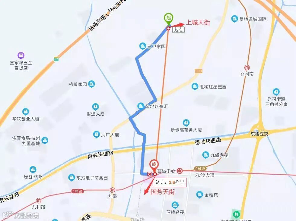 从百度地图上来看,龙湖杭州国芳天街与丰收湖龙湖天街的直线距离仅约2.6公里左右。