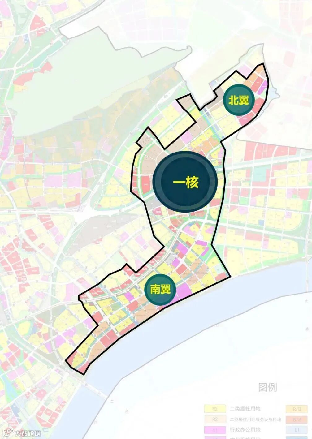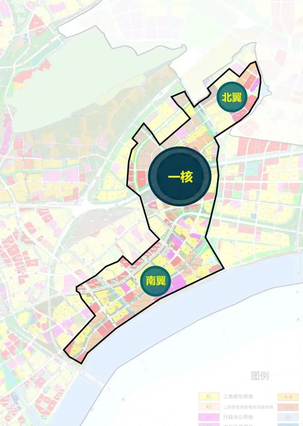 中部功能核心区位于园区钱塘智慧城核心区域,主要承载发展新技术、新业态,集聚高端产业的功能。