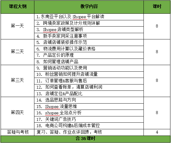 具体目标:Shopee店铺选品、运营、流量环节一次性打通;Shopee店铺闭环、爆款、广告投放点对点突破;Shopee店铺年度计划、活动玩法全方位解析;Shopee店铺转化率、粉丝运营、成本核算讲解。