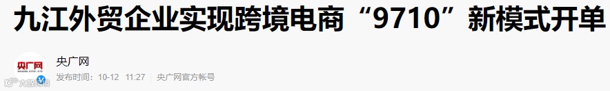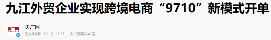 9月份,江西九江市两家公司先后通过跨境电商“9710”新模式分别出口产品到韩国、新加坡,两批货物价值分别为99774美元、199528美元。这是九江跨境电商综试区外贸企业实现跨境电商B2B直接出口开单。