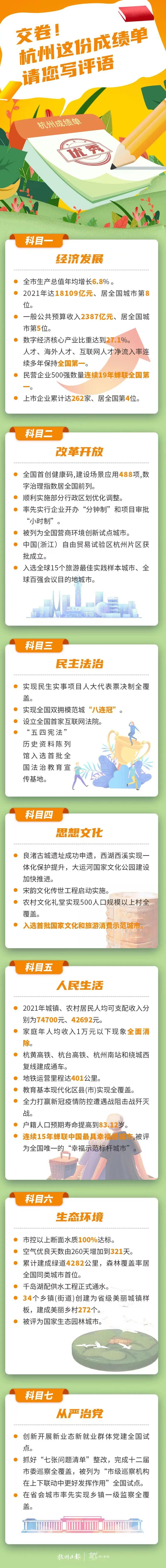 全市生产总值年均增长6.8%,民营企业500强数量连续19年蝉联全国第一,连续15年蝉联中国最具幸福感城市……杭州过去5年的工作成绩单,交卷了!